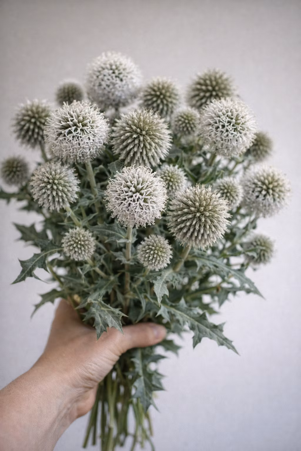 Grafisk, tistellik perenn med runda, taggiga blomkulor i ljust vitt/ivory som ger ett modernt och samtidigt “vilt” uttryck. ‘Arctic Glow’ är en riktig strukturblomma: hög, stadig och otroligt snygg i buketter där den tillför form och rytm.