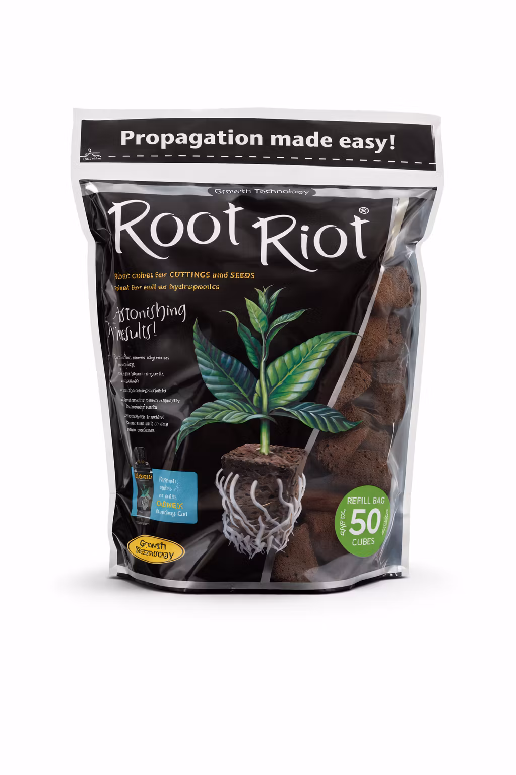 Root Riot rotningspluggar är färdiga, biologiskt nedbrytbara pluggar utvecklade för sticklingsförökning och småplantor. De ger en optimal balans mellan luft och fukt, vilket skapar perfekta förutsättningar för snabb och jämn rotbildning.